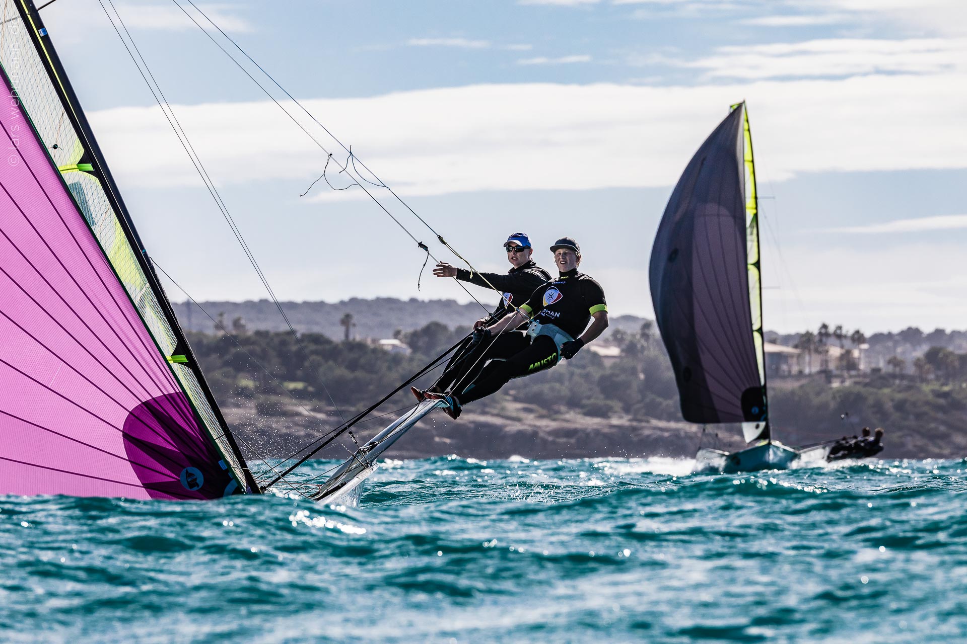 Nachmittags ging es nach den Sport- und Theorie-Einheiten aufs Wasser. Die Bucht von Palma bot anspruchsvoller Bedingungen mit Wind um 18 Knoten und 1,5 Meter Wellenhöhe – eine gute Vorbereitung für das erste europäische Saison-Highlight, die Trofeo Princesa Sofia Ende März.