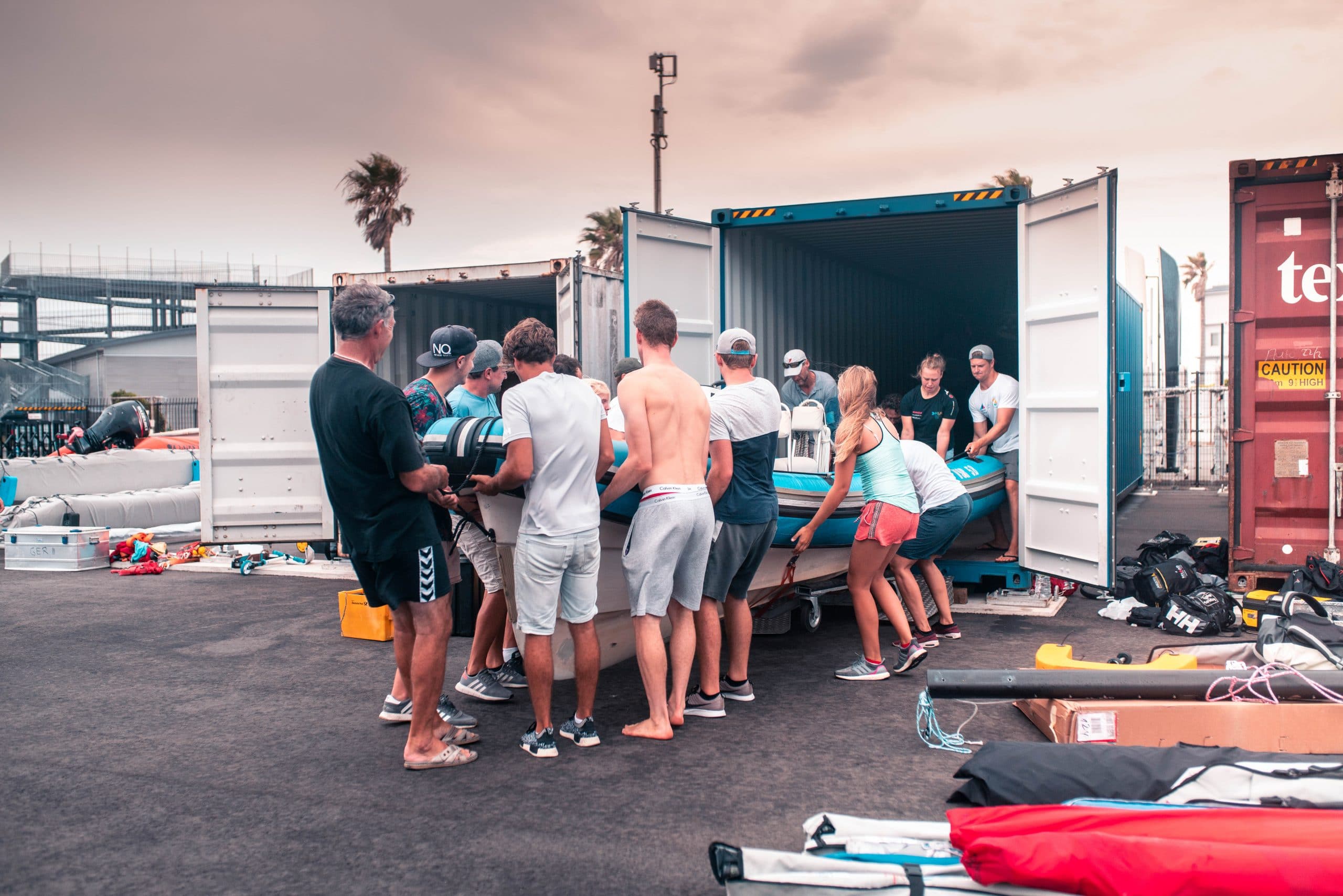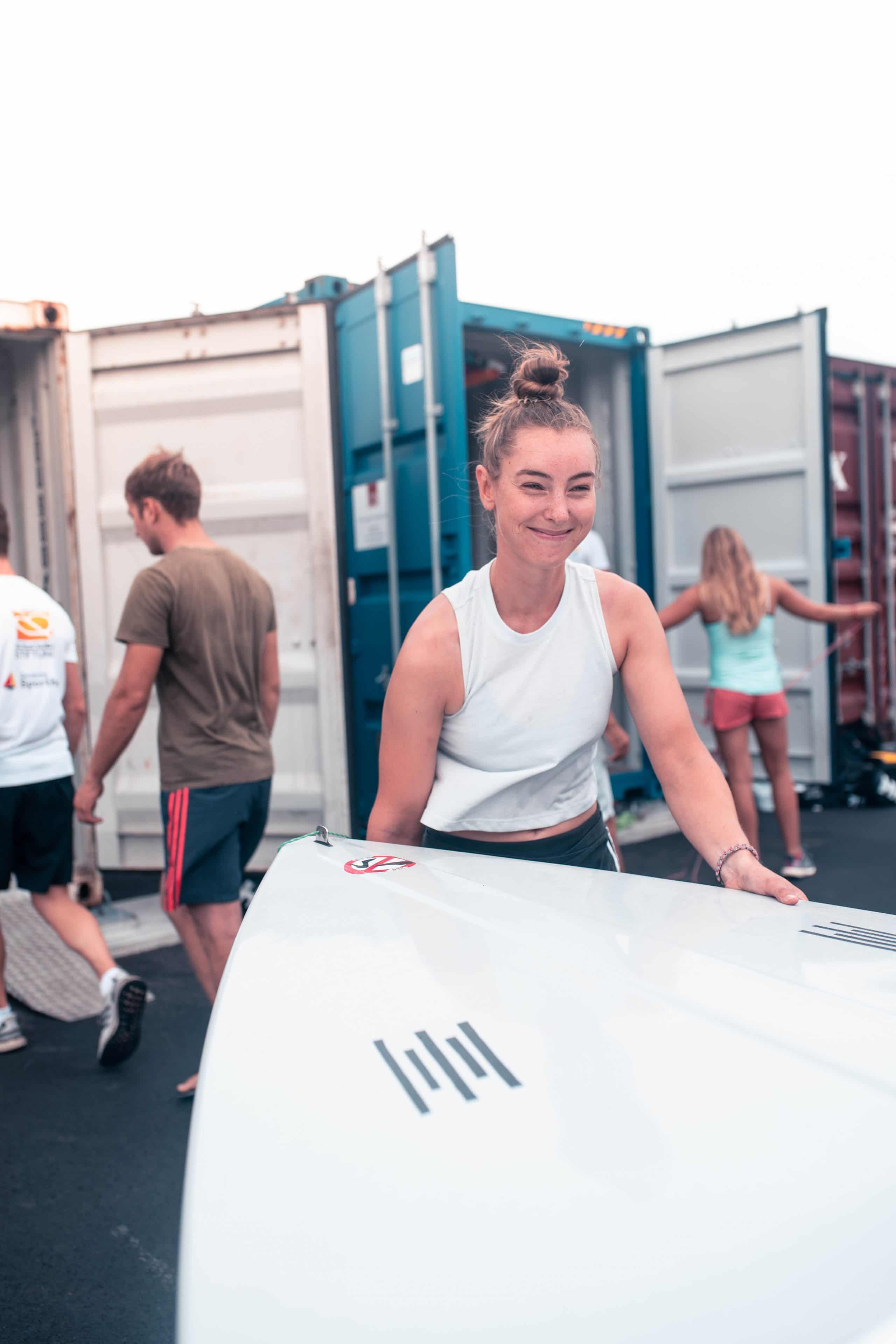 Der Japanreise voraus ging eine umfangreiche logistische Leistung: Ende Juli wurden Boote und Material in Container verstaut und nach Japan verschifft. Ein eigens für die Olympiavorbereitungen entworfener Werkstattcontainer gelangte ebenfalls auf dem Seeweg nach Enoshima.